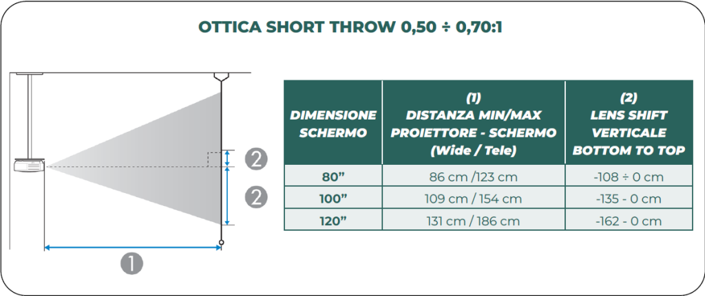 La lente con rapporto di tiro da 0.79÷1.36:1 è presente nei modelli EB-L690SU/695SU e EB-L790SE/795SE.