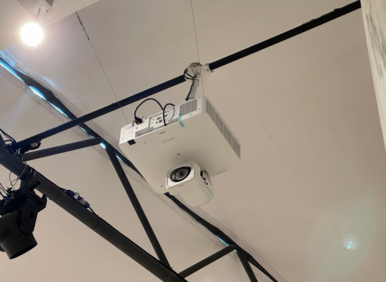 «La precisione colorimetrica dei proiettori Epson – dice Mazzei – è proverbiale, e anche in questo caso il modello scelto non è venuto meno alle aspettative, grazie soprattutto alla tecnologia 3LCD, che garantisce livelli di luminosità del colore pari a quelli del bianco. Sono inoltre prodotti poco ingombranti (70% di ingombro in meno rispetto alla serie Epson precedente) e leggeri e questo non è un dettaglio da poco, considerando che, lavorando in un immobile tutelato dalle belle arti, non solo, come già accennato, non abbiamo potuto fissare le staffe a parete, dovendole invece agganciare alla griglia metallica del soffitto, ma non ci è stato permesso nemmeno di saldarle a questa griglia, il che ci ha costretto a utilizzare un ingegnoso sistema di ganci e cavi d’acciaio: la leggerezza dei videoproiettori si è rivelata quindi preziosa. Altri due valori aggiunti di questo modello sono l’efficienza energetica (30% di consumo in meno a parità di luminosità) e una manutenzione ridotta quasi a zero, grazie a una totale impermeabilità alla polvere e all’assenza di filtri dell’aria da pulire».