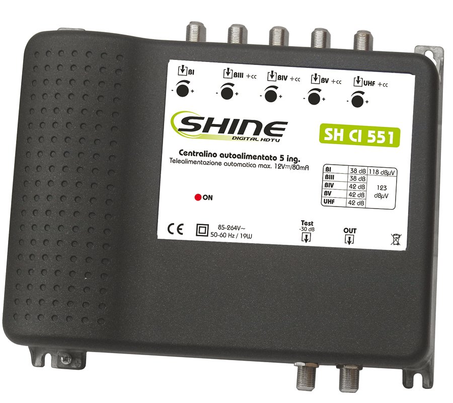 La gamma Shine comprende due modelli con amplificazione VHF/UHF separata e filtro LTE inseribile, con un apposito jumper. Il modello SH APCAG/20 è dotato di controllo automatico del guadagno in banda UHF: il guadagno è di 12 dB in banda III e 28 dB in UHF. Il livello massimo d’uscita è di 107 dBµV. Sul terminale d’uscita è presente la telealimentazione a 12Vc.c. Sono assemblati in un contenitore completamente schermato, con tecnologia SMD. Questi amplificatori sono molto richiesti nelle zone dove il segnale subisce notevoli variazioni di ampiezza nell’arco della giornata.
