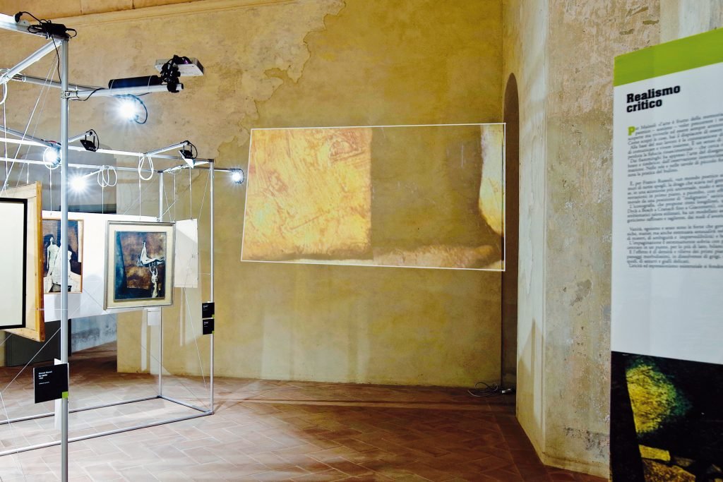 «Ho dato il mio contributo – ci spiega Graziano Bertelegni, che ha curato l’ideazione e il progetto della mostra ‘Realismo critico’ – in particolare alla realizzazione dei contenuti proiettati. L’idea è nata dalla volontà di raccontare le vicende di un sodalizio artistico che, sganciatosi dal “Realismo esistenziale” milanese, tra gli anni ‘50 e ‘60 aveva iniziato ad esprimersi con un linguaggio figurativo autonomo. “Realismo critico” fu la definizione che Virginio Giacomo Bono, curatore della mostra, attribuì in quegli anni a questa nuova corrente. La mostra proponeva opere tratte dalla loro produzione storica, affiancate a contenuti sonori e visivi generati dai videoproiettori. Una soluzione che ha permesso di inserire nel percorso espositivo le testimonianze dirette dei due artisti ancora viventi intervistati per l’occasione. Nel suo complesso la mostra era composta da un’ottantina di opere. In particolare, a noi interessava riproporre quell’avvenimento che era stata la mostra di Ferrara cercando di ricostruirne anche il periodo storico, e l’aggiunta di videoproiezioni con le interviste degli artisti, filmati di quegli anni, testimonianze di scrittori, poeti e intellettuali andava in quella direzione».