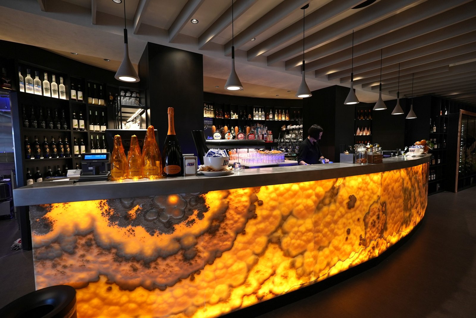 Carli ci fa qualche esempio concreto di ciò che aveva in mente: «Il nostro desiderio era che il locale diventasse un punto di ritrovo non solo per una cena, ma anche per altri momenti della giornata: il pomeriggio come sala da tè, prima di cena per aperitivi e dopo cena come locale per bere qualcosa e ascoltare della buona musica. Inoltre, volevamo potesse essere lo scenario di festeggiamenti di vario tipo, e per questo abbiamo deciso di creare due postazioni in cui dj e artisti potessero collegare la loro strumentazione, per poterla diffondere anche in qualunque altro ambiente del locale».