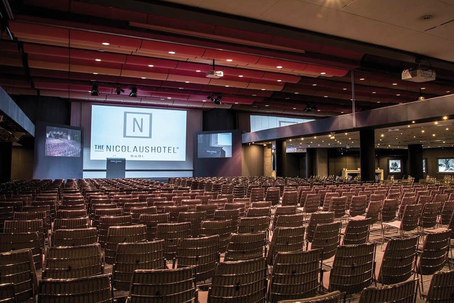 Il centro congressi di The Nicolaus Hotel a Bari è stato rinnovato con videoproiettori NEC, telecamere Lumens e schermi Ligra. I segnali sono gestiti in HDBaseT con extender CYP.