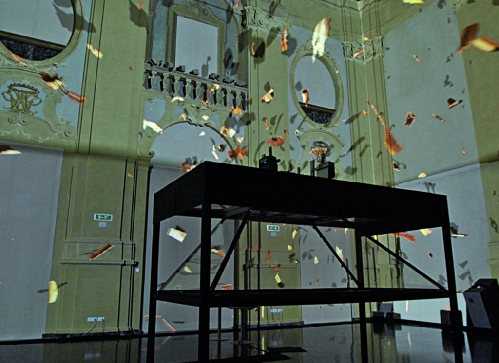 «Nel blocco centrale è stata posizionata una struttura con una base di 4×2 metri, alta 3, dove sono stati installati 3 proiettori: per generare l’effetto 3D nelle varie posizioni (centrale, laterale, destra e sinistra) proiettano le immagini su una pellicola, attraverso uno schermo semitrasparente. Pertanto – prosegue Magagna – l’immagine del videoproiettore che esce è un’immagine monodimensionale che prende profondità attraverso la pellicola. In occasione dell’inaugurazione, mantenuti anche per alcune sessioni successive, sono stati utilizzati ulteriori 2 videoproiettori da 15 mila Lumen, che puntavano dritto al soffitto»