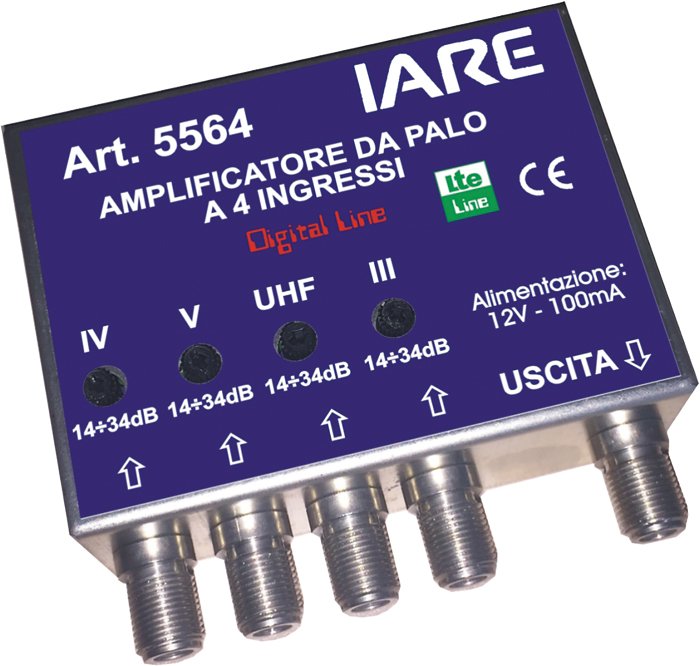 Gli amplificatori con gli ingressi di banda III, IV e V separati sono stati di recente arricchiti del quarto ingresso larga banda UHF e i modelli a 2, 3 e 4 ingressi sono stati potenziati fino a 34dB di guadagno, sia in banda III che in banda UHF.
