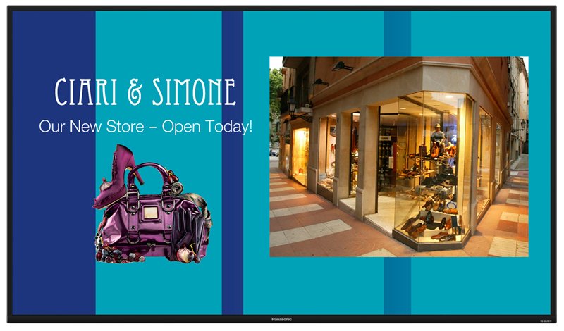 Il sito di Panasonic, infatti, mette a disposizione ben 30 template diversi in formato ppt, editabili e personalizzabili, dedicati ai seguenti mercati: Bar e Ristoranti, Librerie, Negozi, Agenzie immobiliari, Scuole, Trasporti e Matrimoni.