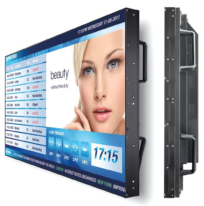 Fra i punti di forza che renderanno il lavoro dell’installatore più semplice e veloce sottolineamo la versione evoluta dell’Auto Tile Matrix. Questa nuova versione rappresenta un vero e proprio set-up completo per videowall. Quando il cablaggio dei monitor che compongono il video wall viene effettuato in daisy chain (utilizzando DisplayPort e LAN) basterà programmare dal primo display soltanto quanti schermi sono presenti (in orizzontale e verticale) per effettuare tutto il lavoro automaticamente. In termini di tempo il risparmio è significativo e cresce con l’aumentare del numero dei display che compongono il videowall. Nei monitor della concorrenza, invece, questa funzione non è disponibile e il setup va effettuato su ognuno dei display. Inoltre, da evidenziare anche presenza della DisplayPort 1.2 Multistream: con un PC dotato di scheda grafica compatibile è possibile, attraverso un unico cavo DP, visualizzare un contenuto UltraHD-4K a tutto schermo oppure quattro diverse immagini Full HD.