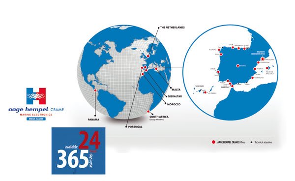 La divisione Mega Yacht rappresenta un’area di ulteriore espansione: ben consolidata sul mercato, con un potenziale di crescita elevato. Tutti i servizi e i progetti della divisione Mega Yacht vengono gestiti dall’ufficio di Barcellona. Les Housley, Direttore Generale di Aage Hempel International, sottolinea che l’espansione in Europa si è sempre orientata per soddisfare le esigenze dei nuovi clienti, oltre che per presidiare nuovi mercati. Uno di questi è sicuramente l’Italia che presenta un importante potenziale per la divisione Mega Yacht per la presenza di numerosi cantieri di grande reputazione internazionale. Aage Hempel ha già avviato collaborazioni con numerosi cantieri navali e partner vari per i servizi di assistenza. La divisione Mega Yacht è stata avviata nel gennaio 2010 e fa parte del Gruppo Aage Hempel. Nel corso di questi anni ha saputo costruire un ottimo rapporto con i propri clienti, fornitori e produttori, oltre che con le società di certificazione, diventando un riferimento nell’elettronica a bordo. Fra le specializzazioni di questa divisione evidenziamo la realizzazione di sistemi di navigazione integrati e la gestione dei progetti, con un servizio tecnico sempre disponibile 24 ore al giorno e 7 giorni la settimana, sia a livello locale che internazionale. Il segreto di questo consenso è una conseguenza logica dell’aggiornamento costante al quale sottopone i propri tecnici. Un aspetto fondamentale per tenere il passo con la tecnologia all’avanguardia, utilizzata a bordo di Mega Yacht. Tutti gli ingegneri elettronici sono specializzati nella riparazione di apparecchiature di navigazione e di comunicazione: ricevono una formazione e un aggiormanento a livello globale, in funzione della provenienza del produttore. Per Aage Hempel l’impegno è quello di avere i migliori ingegneri del settore e migliorare costantemente i propri standard, all’interno del’azienda e durante gli interventi tecnici presso i clienti.
