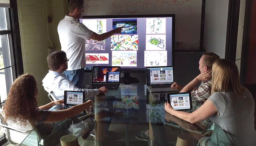 Nelle Sale Riunione o in Classe dà la possibilità a più persone di condividere i contenuti multimediali su un unico display, utilizzando PC (Windows/OS X), tablet o smartphone (iOS/Android) in rete WiFi o Ethernet.