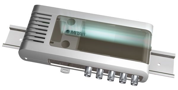 La serie Master dispone di ulteriori versioni, utili nell’attuale scenario della DTT. Come i modelli dotati di AGC, ad esempio, che consente di adeguare il livello di amplificazione in funzione del segnale in ingresso per mantenere stabile il livello d’uscita (evitando perciò il rischio d’intermodulazione). Oppure il filtro LTE, che limita la banda passante della gamma UHF a 790 MHz. L’AGC si dimostra efficace quando ci si trova ai margini della copertura di un ripetitore o in presenza di specchi d’acqua che inducono variazioni nel livello del segnale ricevuto. Inoltre, questi centralini offrono l’amplificazione separata, completamente schermata, con elevata linearità di guadagno e alto isolamento tra gli ingressi. I centralini Master possono essere montati a parete oppure su barra DIN, una caratteristica che li contraddistingue. Da segnalare poi l’anima ‘ecologica’ della progettazione di Mitan Technologies: il nuovo alimentatore della serie Master, basato su tecnologia switching, consente di raggiungere un livello di efficienza molto elevato (superiore all’80 per cento), rendendo trascurabile la necessità di dissipazione termica.