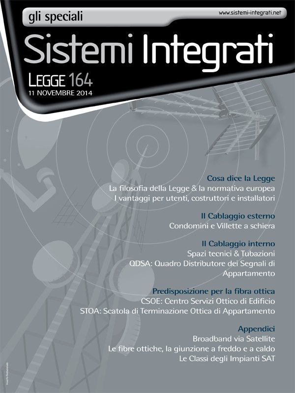 La Legge 164/2014 di conversione del decreto legge 133/2014 modifica il DPR 380/01. L’articolo 6-ter introduce, per gli edifici di nuova costruzione e per le ristrutturazioni importanti, l’obbligo di realizzare un’infrastruttura fisica multiservizio passiva interna all’edificio.