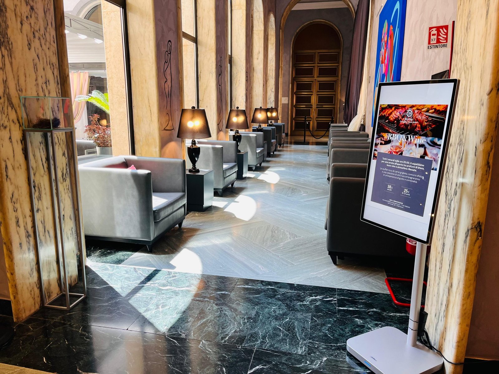 «Oltre che dei display Explorer – prosegue Improta – in albergo ora disponiamo anche di tre totem indoor DHI-LDV55-SAI400L con schermo LCD verticale da 55” e 320 cd/mq, no-touch, anch’essi trasportabili per essere posizionati dove serve. I totem ci aiutano quotidianamente nella comunicazione di più eventi nella stessa giornata, spesso in contemporanea. Anche il richiamo a quello che è il menù del nostro ristorante passa attraverso i totem, così come dal display Explorer. C’è tutta una programmazione che possiamo fare in autonomia con questi dispositivi, cambiando velocemente il tipo di messaggio.
