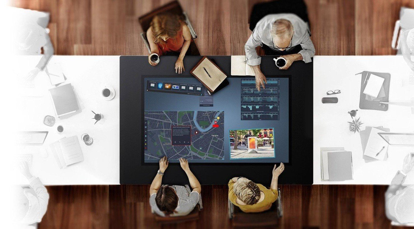 Pensata per contesti multi-utente dove analisi, decisioni e formazione richiedono strumenti agili, la piattaforma trasforma il tavolo di lavoro in uno spazio digitale condiviso, basato su display touch Sharp e workstation HP, in cui i partecipanti possono presentare, confrontare e annotare contenuti di ogni tipo — documenti, immagini, grafici, video o flussi web — senza software aggiuntivi.