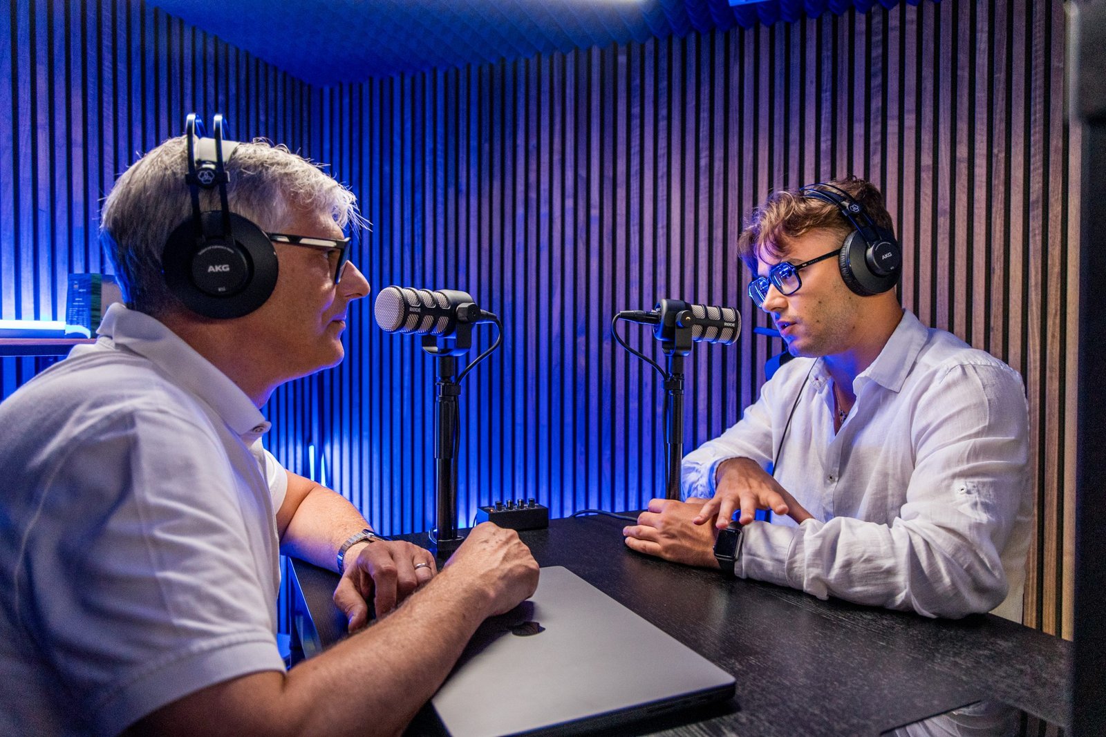 Grazie alla stretta collaborazione con Cast, oggi Tokio Studio può dire di avere tutto ciò che serve per portare avanti con successo la propria attività. Alex Niccolai ci fornisce tutti i dettagli relativi ai diversi ambienti in cui è suddiviso il nuovo studio di posa e sulle rispettive dotazioni tecniche. «Il primo è uno spazio più informale con una sorta di salottino, tutto customizzabile con props (gli oggetti di scena), scaffali, quadri da personalizzare. È ideale per un talk, una chiacchierata. Illuminazione e fotografia sono già predisposte e abbiamo tre telecamere, che permettono di ottenere un’inquadratura totale e fino a quattro primi piani delle persone coinvolte. Il secondo spazio è più legato alla formazione, con una zona per fare brainstorming. Ci sono arredi a terra e una lavagna. Qui si possono realizzare piccoli videocorsi, tutorial, presentazioni di nuove offerte delle aziende. C’è tutto lo spazio per il posizionamento di luci, camera, eventuali scaffali. Il terzo e ultimo spazio, invece, è molto più incentrato sul podcast: uno spazio chiuso, insonorizzato per ottenere un impatto sonoro radiofonico, uno spazio con tavolo predisposto con due microfoni a condensatore, un’illuminazione molto fresca, comandabile digitalmente tramite una app che crea vari effetti e permette di modificare in un attimo il look della stanza.» È evidente come nulla sia lasciato al caso e quanta fiducia questi giovani abbiano nelle proprie idee.