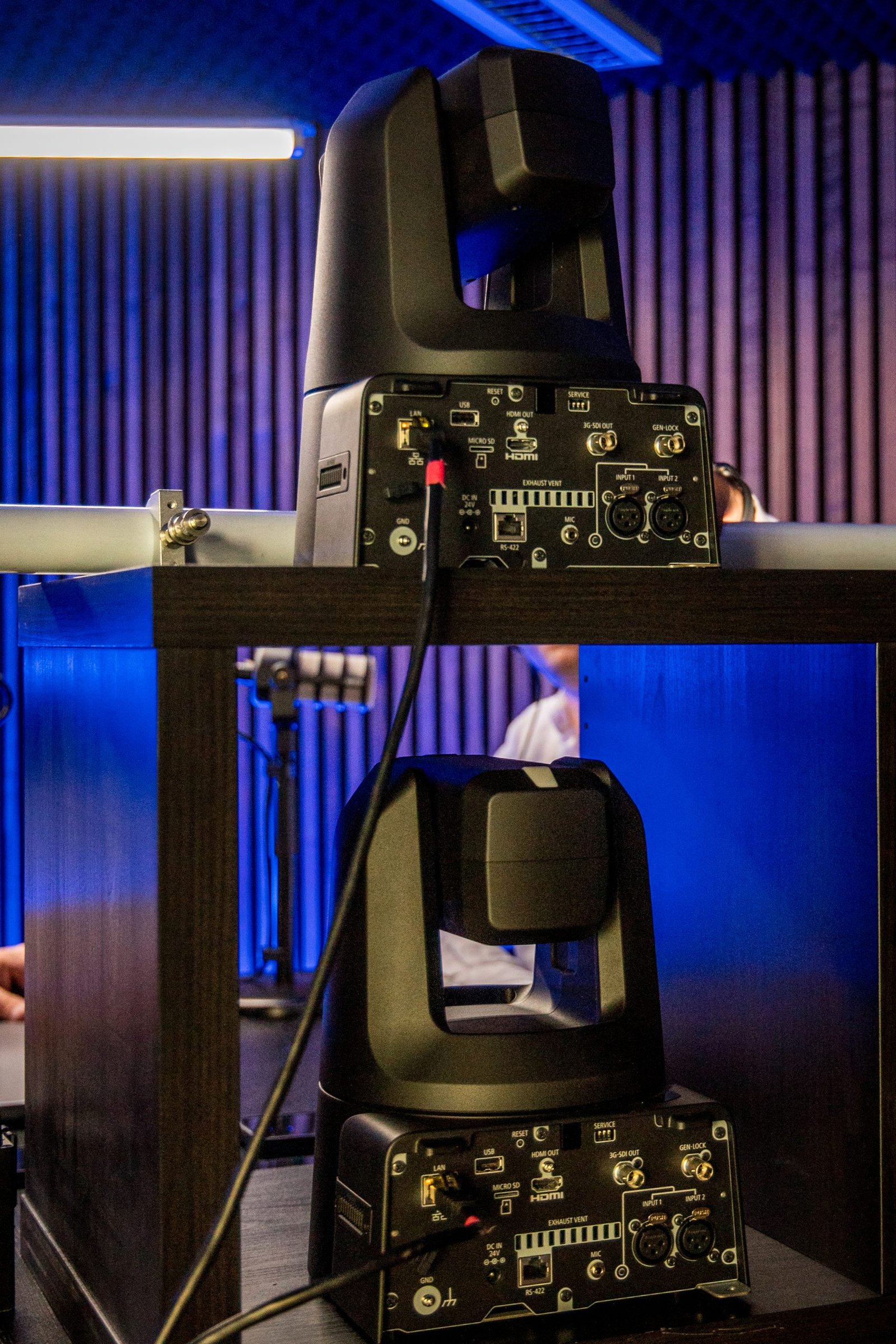 Le due Canon PTZ installate nello spazio dedicato ai podcast.