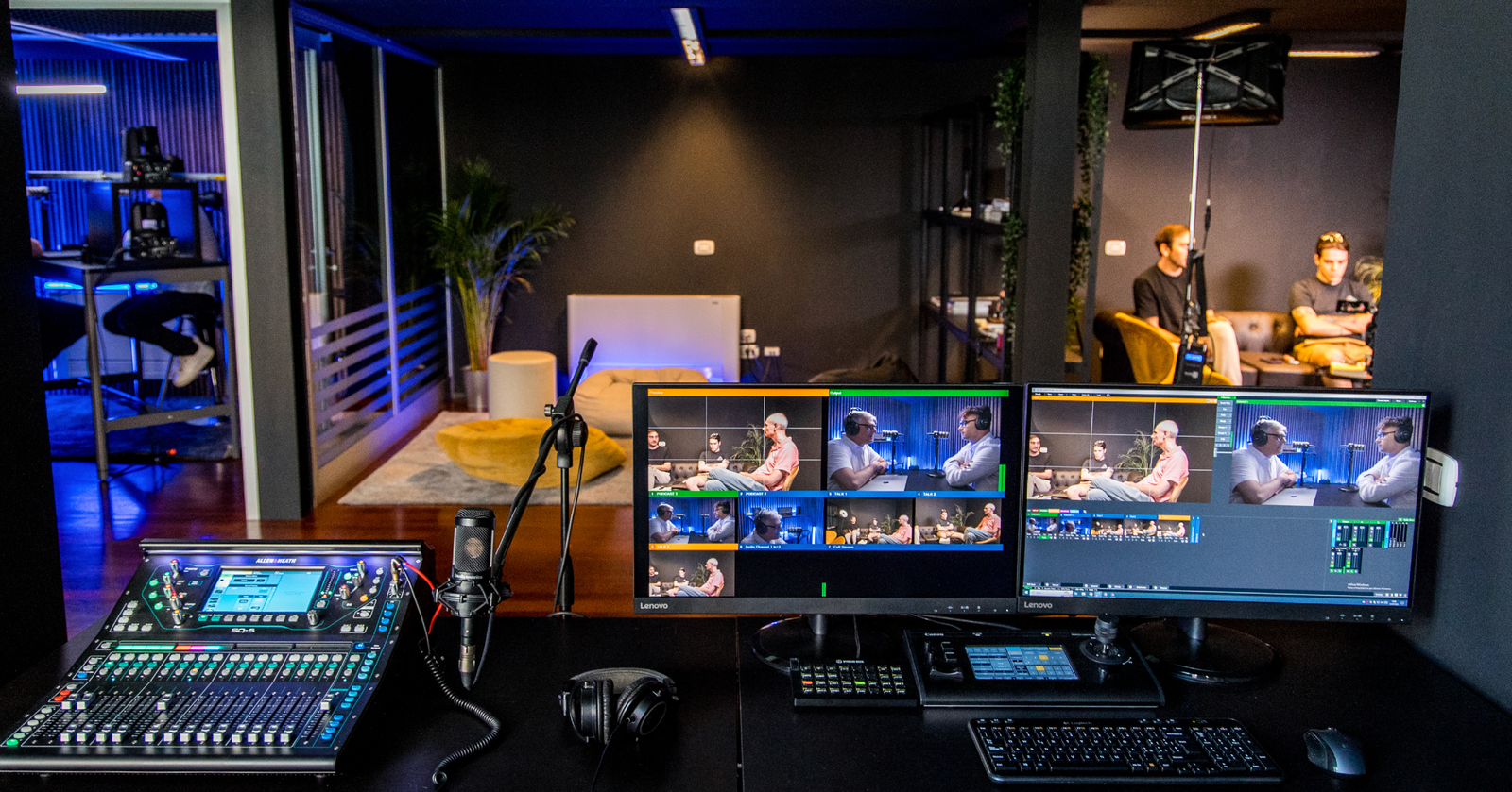 Lo spazio incentrato sui podcast, insonorizzato per ottenere un impatto sonoro radiofonico e dotato di due PTZ Canon CR-N500.