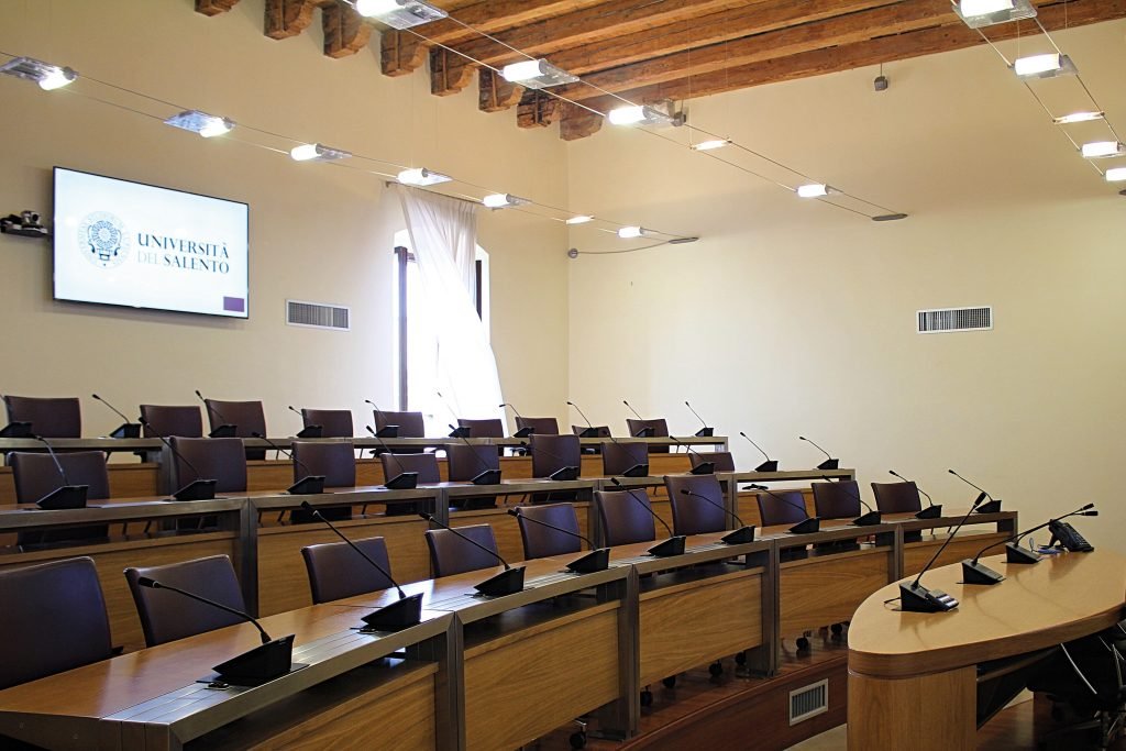 Entriamo nel vivo di una parte del progetto, andando a ripercorrere l’infrastrutturazione di una serie di aule didattiche e sale riunioni dell’Università del Salento. Nello specifico, soffermiamoci sull’allestimento delle sale 1.0, previsto per circa 115 ambienti, che consente ai docenti di fare lezione in soli due passaggi: