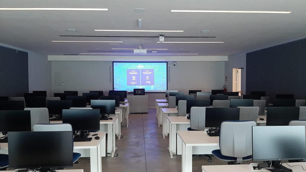 Laboratori informatici – Si tratta di due ambienti situati al piano interrato, uno da 48 e uno da 52 computer, anch’essi dotati di sistema multimediale come le aule didattiche, con proiettori Epson dello stesso modello, che accettano segnali 4K in ingresso e li visualizzano tramite la tecnologia pixel shifting, che raddoppia la risoluzione nativa del pannello Full HD.