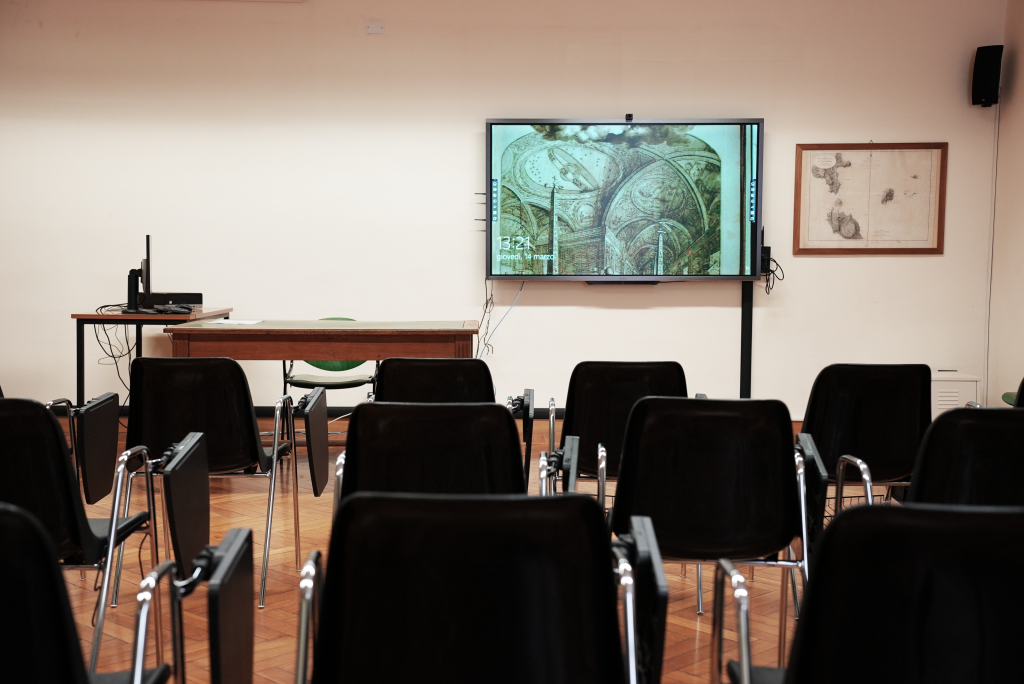 Proprio dell’installazione parliamo con Carlo De Ruvo. «Abbiamo stabilito un cronoprogramma insieme alla direzione dei lavori, in modo che l’installazione fosse diluita nel tempo senza mai interrompere le lezioni. A mano a mano, venivano liberate le aule interessate dagli interventi. I monitor di Newline sono comodi da installare, essendo dotati di predisposizione VESA, ovvero di fori filettati sullo schienale del monitor con posizioni standard, in modo che le zanche che vengono fissate al muro coincidano. Le difficoltà maggiori ci sono state con le pareti di cartongesso, dove abbiamo montato i monitor con supporti che scaricano direttamente a pavimento. Non abbiamo riscontrato particolari problemi nemmeno con i carrelli, che sono semplici e performanti. Per quanto riguarda l’utilizzo delle nuove tecnologie, abbiamo concordato tre date con i docenti e con le persone incaricate di gestire le sale per presentare i monitor e rispondere ai loro dubbi. È infatti importantissimo formare chi deve operare per risolvere eventuali problemi, anche se dobbiamo dire che l’assistenza Newline fornisce risposte immediate sia telefonicamente sia via mail.»