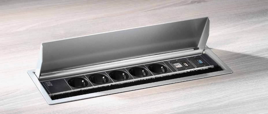 Per quanto riguarda la dotazione microfonica, Colosimo dice: «abbiamo scelto basi microfoniche da incasso, eleganti e pulite, senza cavi visibili. Sempre sul tavolo dei relatori abbiamo delle placche di interconnessione Bachmann Coni, che integrano HDMI, alimentazione, rete, audio e USB e sono predisposte per poter utilizzare anche lo standard USB-C. La qualità dei prodotti che Exertis ci ha fornito è molto elevata: sono robusti ma hanno un’estetica essenziale, che soddisfa gli architetti».