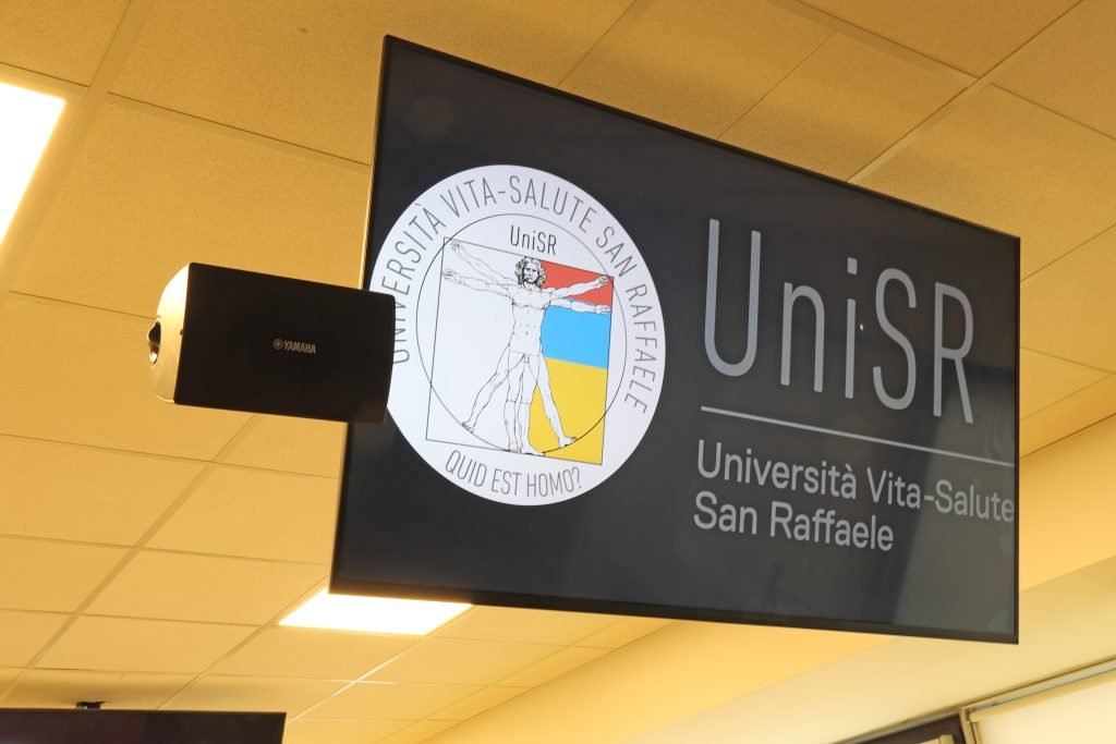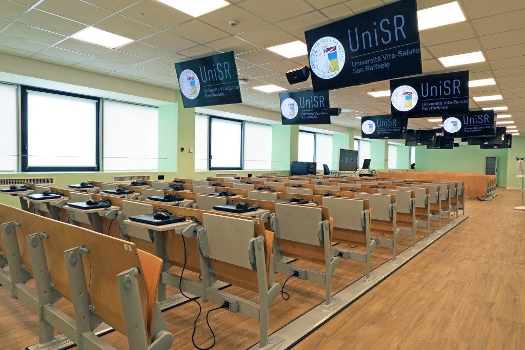 È facile dedurre che per il San Raffaele sia stato naturale continuare ad affidarsi a MCA – entrata a far parte di STIM Tech Group – anche per l’allestimento delle nuove aule universitarie. «Ogni anno l’università aveva necessità di aumentare il numero di aule, crescendo fino ad averne oggi quasi 100, a cui si aggiungono alcuni laboratori, tutti allestiti da noi. Abbiamo collaborato anche all’allestimento di un’aula di simulazione per la formazione di pronto soccorso e seguiamo gli eventi nelle aule o nell’auditorium Santa Maria del Dibit, ma anche in altri auditori più piccoli».
